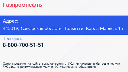 Газпромнефть по адресу 445019, Самарская область, Тольятти, Карла Маркса, 1а в дальнейшем Организация, размещена в следующих категориях: