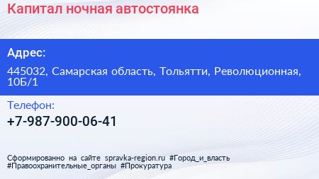 Капитал, ночная автостоянка по адресу 445032, Самарская область, Тольятти, Революционная, 10Б/1 в дальнейшем Организация, размещена в следующих категориях: