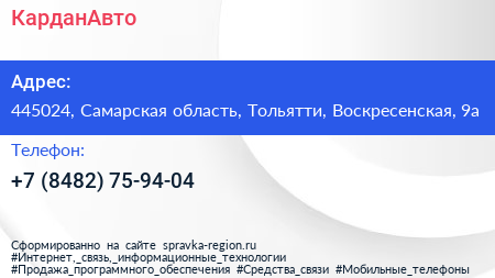 КарданАвто по адресу 445024, Самарская область, Тольятти, Воскресенская, 9а в дальнейшем Организация, размещена в следующих категориях: