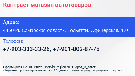 Контраст, магазин автотоваров по адресу 445044, Самарская область, Тольятти, Офицерская, 12в в дальнейшем Организация, размещена в следующих категориях: