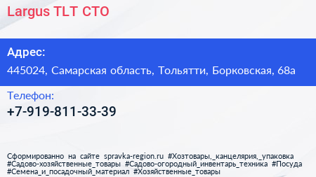 Largus TLT, СТО по адресу 445024, Самарская область, Тольятти, Борковская, 68а в дальнейшем Организация, размещена в следующих категориях: