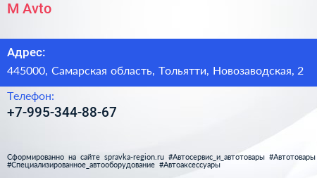 M-Avto по адресу 445000, Самарская область, Тольятти, Новозаводская, 2 в дальнейшем Организация, размещена в следующих категориях: