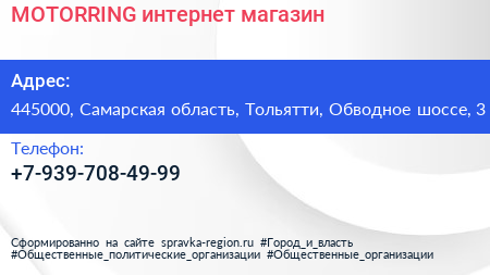 MOTORRING, интернет-магазин по адресу 445000, Самарская область, Тольятти, Обводное шоссе, 3 в дальнейшем Организация, размещена в следующих категориях:
