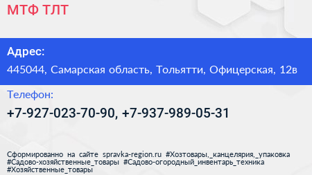 МТФ-ТЛТ по адресу 445044, Самарская область, Тольятти, Офицерская, 12в в дальнейшем Организация, размещена в следующих категориях: