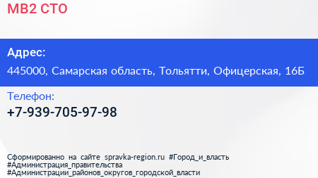 МВ2, СТО по адресу 445000, Самарская область, Тольятти, Офицерская, 16Б в дальнейшем Организация, размещена в следующих категориях: