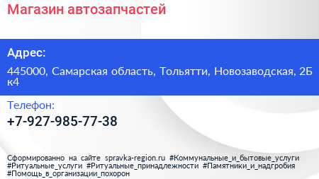 Магазин автозапчастей по адресу 445000, Самарская область, Тольятти, Новозаводская, 2Б к4 в дальнейшем Организация, размещена в следующих категориях: