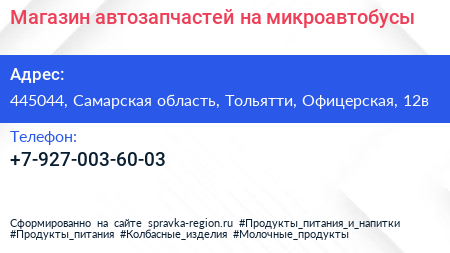Магазин автозапчастей на микроавтобусы по адресу 445044, Самарская область, Тольятти, Офицерская, 12в в дальнейшем Организация, размещена в следующих категориях: