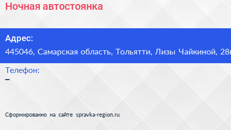 Ночная автостоянка по адресу 445046, Самарская область, Тольятти, Лизы Чайкиной, 28в в дальнейшем Организация, размещена в следующих категориях:
