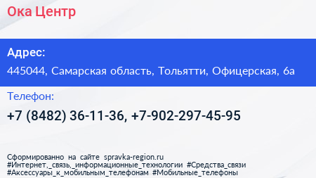 Ока-Центр по адресу 445044, Самарская область, Тольятти, Офицерская, 6а в дальнейшем Организация, размещена в следующих категориях: