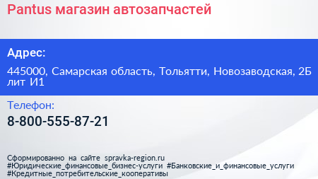 Pantus, магазин автозапчастей по адресу 445000, Самарская область, Тольятти, Новозаводская, 2Б лит И1 в дальнейшем Организация, размещена в следующих категориях: