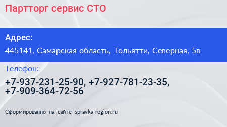 Партторг-сервис, СТО по адресу 445141, Самарская область, Тольятти, Северная, 5в в дальнейшем Организация, размещена в следующих категориях: