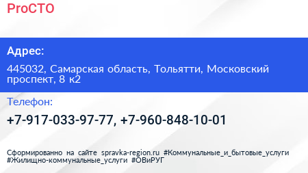 ProСТО по адресу 445032, Самарская область, Тольятти, Московский проспект, 8 к2 в дальнейшем Организация, размещена в следующих категориях: