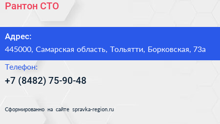 Рантон, СТО по адресу 445000, Самарская область, Тольятти, Борковская, 73а в дальнейшем Организация, размещена в следующих категориях: