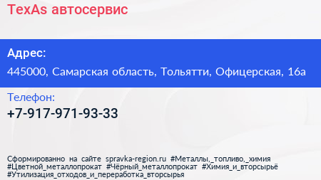 TexAs, автосервис по адресу 445000, Самарская область, Тольятти, Офицерская, 16а в дальнейшем Организация, размещена в следующих категориях: