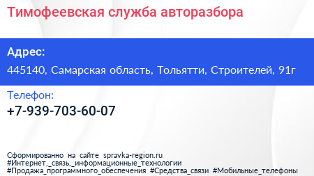 Тимофеевская, служба авторазбора по адресу 445140, Самарская область, Тольятти, Строителей, 91г в дальнейшем Организация, размещена в следующих категориях: