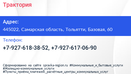 Трактория по адресу 445022, Самарская область, Тольятти, Базовая, 60 в дальнейшем Организация, размещена в следующих категориях: