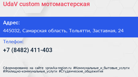 UdaV custom, мотомастерская по адресу 445032, Самарская область, Тольятти, Заставная, 24 в дальнейшем Организация, размещена в следующих категориях:
