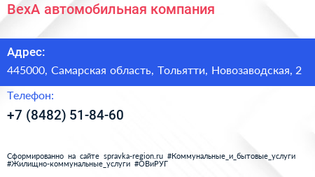 ВехА, автомобильная компания по адресу 445000, Самарская область, Тольятти, Новозаводская, 2 в дальнейшем Организация, размещена в следующих категориях: