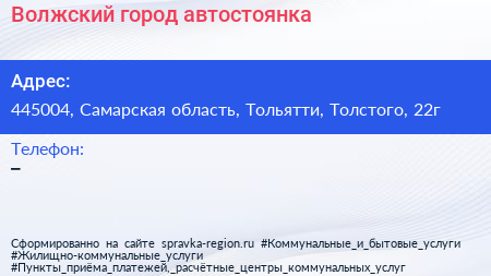 Волжский город, автостоянка по адресу 445004, Самарская область, Тольятти, Толстого, 22г в дальнейшем Организация, размещена в следующих категориях: