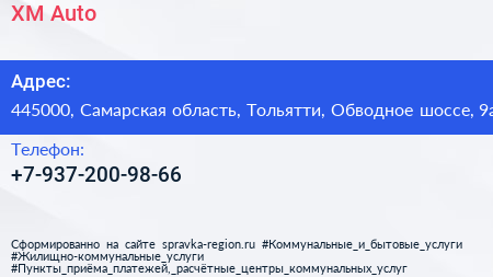 XM-Auto по адресу 445000, Самарская область, Тольятти, Обводное шоссе, 9а в дальнейшем Организация, размещена в следующих категориях: