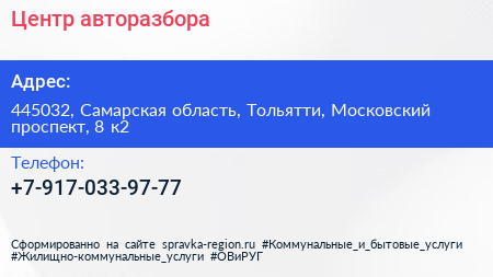 Центр авторазбора по адресу 445032, Самарская область, Тольятти, Московский проспект, 8 к2 в дальнейшем Организация, размещена в следующих категориях: