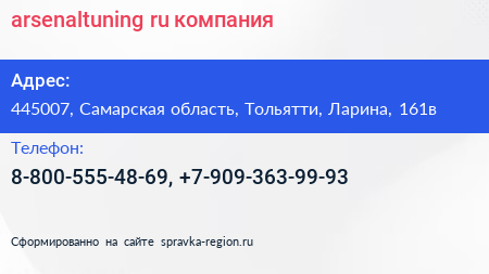 arsenaltuning.ru, компания по адресу 445007, Самарская область, Тольятти, Ларина, 161в в дальнейшем Организация, размещена в следующих категориях: