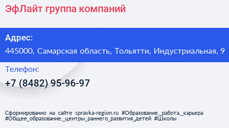 ЭфЛайт, группа компаний по адресу 445000, Самарская область, Тольятти, Индустриальная, 9 в дальнейшем Организация, размещена в следующих категориях: