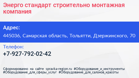 Энерго стандарт, строительно-монтажная компания по адресу 445036, Самарская область, Тольятти, Дзержинского, 70 в дальнейшем Организация, размещена в следующих категориях: