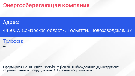 Энергосберегающая компания по адресу 445007, Самарская область, Тольятти, Новозаводская, 37 в дальнейшем Организация, размещена в следующих категориях: