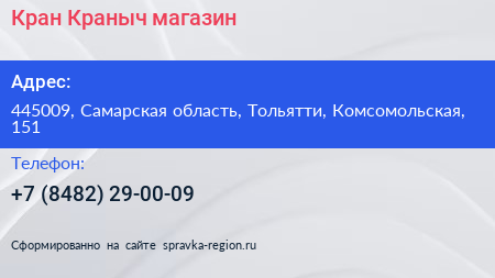 Кран Краныч, магазин по адресу 445009, Самарская область, Тольятти, Комсомольская, 151 в дальнейшем Организация, размещена в следующих категориях: