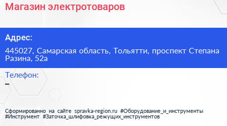 Магазин электротоваров по адресу 445027, Самарская область, Тольятти, проспект Степана Разина, 52а в дальнейшем Организация, размещена в следующих категориях: