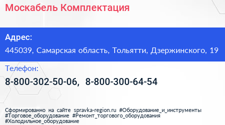 Москабель-Комплектация по адресу 445039, Самарская область, Тольятти, Дзержинского, 19 в дальнейшем Организация, размещена в следующих категориях: