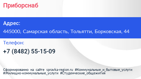 Приборснаб по адресу 445000, Самарская область, Тольятти, Борковская, 44 в дальнейшем Организация, размещена в следующих категориях: