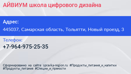 АЙВИУМ, школа цифрового дизайна по адресу 445037, Самарская область, Тольятти, Новый проезд, 3 в дальнейшем Организация, размещена в следующих категориях: