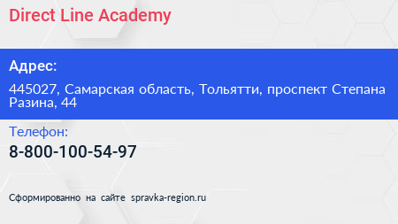 Direct Line Academy по адресу 445027, Самарская область, Тольятти, проспект Степана Разина, 44 в дальнейшем Организация, размещена в следующих категориях: