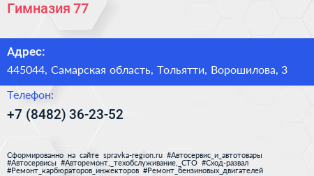 Гимназия №77 по адресу 445044, Самарская область, Тольятти, Ворошилова, 3 в дальнейшем Организация, размещена в следующих категориях: