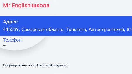Mr English, школа по адресу 445039, Самарская область, Тольятти, Автостроителей, 84 в дальнейшем Организация, размещена в следующих категориях: