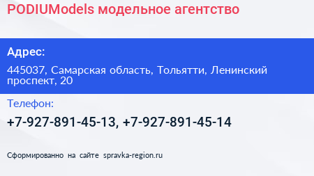 PODIUModels, модельное агентство по адресу 445037, Самарская область, Тольятти, Ленинский проспект, 20 в дальнейшем Организация, размещена в следующих категориях: