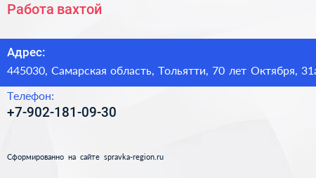 Работа вахтой по адресу 445030, Самарская область, Тольятти, 70 лет Октября, 31а в дальнейшем Организация, размещена в следующих категориях: