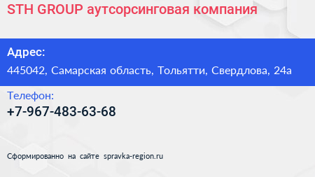 STH-GROUP, аутсорсинговая компания по адресу 445042, Самарская область, Тольятти, Свердлова, 24а в дальнейшем Организация, размещена в следующих категориях: