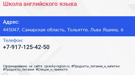 Школа английского языка по адресу 445047, Самарская область, Тольятти, Льва Яшина, 6 в дальнейшем Организация, размещена в следующих категориях: