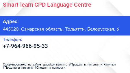 Smart-learn CPD Language Centre по адресу 445020, Самарская область, Тольятти, Белорусская, 6 в дальнейшем Организация, размещена в следующих категориях: