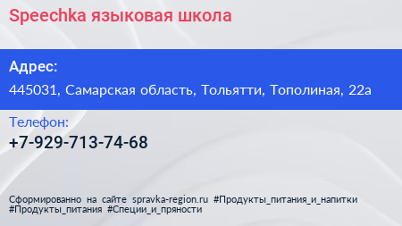 Speechka, языковая школа по адресу 445031, Самарская область, Тольятти, Тополиная, 22а в дальнейшем Организация, размещена в следующих категориях: