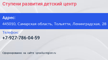Ступени развития, детский центр по адресу 445010, Самарская область, Тольятти, Ленинградская, 28 в дальнейшем Организация, размещена в следующих категориях: