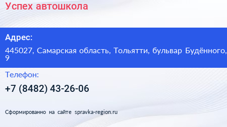 Успех, автошкола по адресу 445027, Самарская область, Тольятти, бульвар Будённого, 9 в дальнейшем Организация, размещена в следующих категориях: