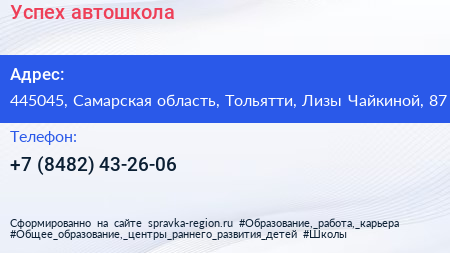 Успех, автошкола по адресу 445045, Самарская область, Тольятти, Лизы Чайкиной, 87 в дальнейшем Организация, размещена в следующих категориях:
