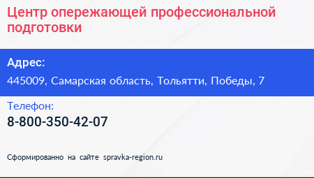 Центр опережающей профессиональной подготовки по адресу 445009, Самарская область, Тольятти, Победы, 7 в дальнейшем Организация, размещена в следующих категориях: