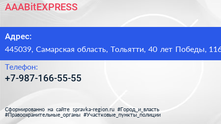 АААBitEXPRESS по адресу 445039, Самарская область, Тольятти, 40 лет Победы, 116 в дальнейшем Организация, размещена в следующих категориях:
