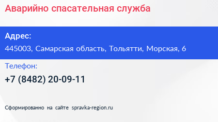 Аварийно-спасательная служба по адресу 445003, Самарская область, Тольятти, Морская, 6 в дальнейшем Организация, размещена в следующих категориях: