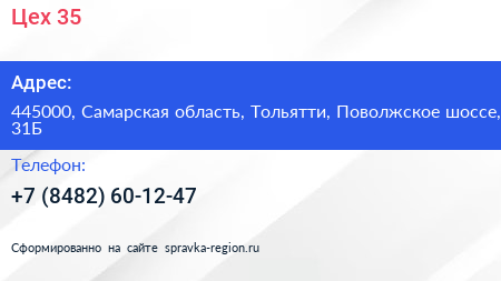 Цех №35 по адресу 445000, Самарская область, Тольятти, Поволжское шоссе, 31Б в дальнейшем Организация, размещена в следующих категориях: